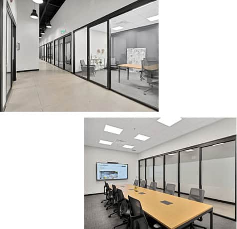 Move-in ready private offices equipped with ergonomic furniture, dedicated internet lines, and access to a secure server room.